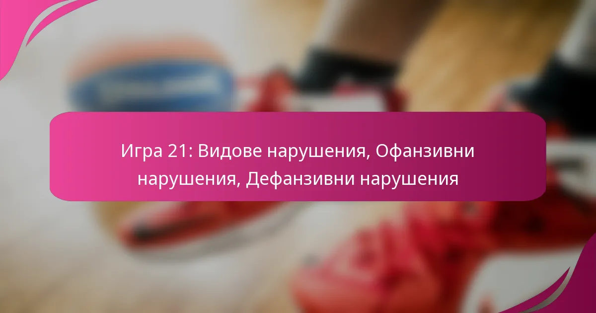 В Игра 21 разбирането на типовете нарушения е от съществено значение за играчите, за да осигурят честна игра и да поддържат динамиката на играта. Ключови нарушения, като например “пътуване”, при което играчът се движи незаконно с топката, и “двойно дриблиране”, което се случва, когато играчът възобнови дриблирането след спиране, могат значително да повлияят на игровия процес и възможностите за точки.